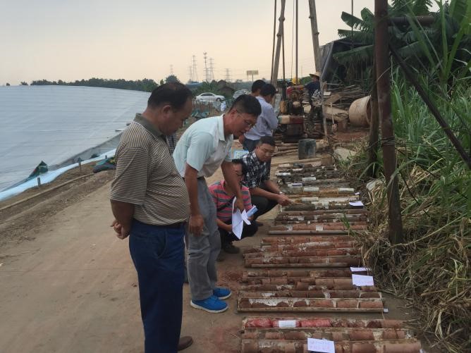 廣東省中山至開平(中山段)高速公路勘察是近年來我院承擔(dān)的線路最長的公路勘察項(xiàng)目,勘察里程長達(dá)66公里。改項(xiàng)目位于珠三角海相沉積軟土分布區(qū),巖性相對復(fù)雜,勘察、鑒別、取樣分析等難度大,我院在軟土分布區(qū)勘察經(jīng)驗(yàn)又相對較少,此外擬建高速公路部分與現(xiàn)有公路及市區(qū)快速線路共線的情況,在現(xiàn)場鉆探施工必須組織協(xié)調(diào)交通問題,以上這些困難都是增加了項(xiàng)目開展的難度,為解決問題,項(xiàng)目組提出“管理合理控制、現(xiàn)場自由靈活、安全以人為本”的原則,在加強(qiáng)協(xié)調(diào)力度的同時(shí),全力以赴趕工期、保質(zhì)量。項(xiàng)目施工高峰期現(xiàn)場鉆機(jī)35臺,施工工人及技術(shù)人員近150余人,未發(fā)生一起安全、質(zhì)量事故。