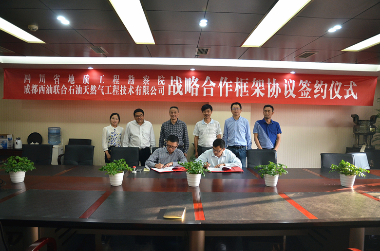 5月10日,在我院321會議室舉行了四川省地質(zhì)工程勘察院與成都西油聯(lián)合石油天然氣工程技術有限公司戰(zhàn)略合作框架協(xié)議簽署儀式。院長安世澤、黨委書記陽光輝、水文地質(zhì)工程公司總經(jīng)理張恒,成都西油聯(lián)合石油天然氣工程技術有限公司總裁牟德剛、技術總監(jiān)廖忠會等出席了簽約儀式。