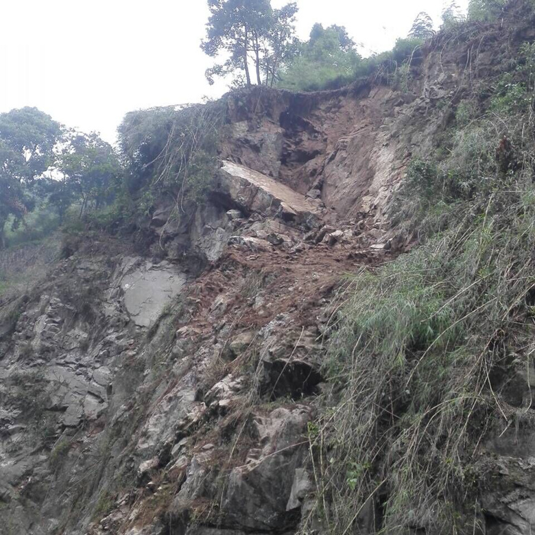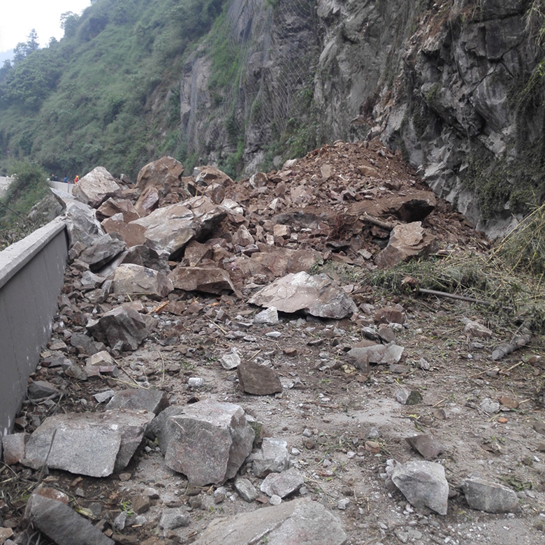 5月10日14點(diǎn),國道318線天全縣境內(nèi)月亮灣大橋往二郎山方向約60m處公路內(nèi)側(cè)邊坡發(fā)生小規(guī)模崩塌,緊急搶修后交通恢復(fù),但坡體上部仍殘留下較多的崩塌物,有隨時(shí)下滑掩埋路面再次阻斷交通的可能,途經(jīng)車輛極其危險(xiǎn),安全隱患極大。