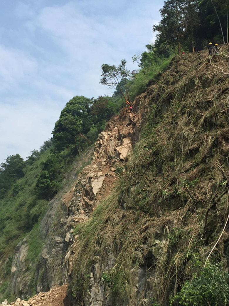 經(jīng)項(xiàng)目組清理路面跨塌土石方后,318國道已于19日晚恢復(fù)通車。目前,項(xiàng)目組正在清除坡體上殘留崩塌體、安裝主動(dòng)防護(hù)網(wǎng)。