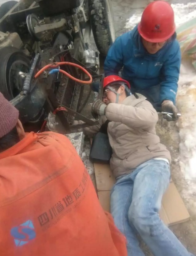 項目經(jīng)理馬天華立即召開緊急會議,討論解決方案。由于項目工地距離縣城較遠,近距離的鄉(xiāng)鎮(zhèn)又沒有維修條件,無論是重新購置設(shè)備,還是前往縣城維修設(shè)備或者請維修師傅前來,都至少要耽誤一周的工期。為確保項目順利開工,項目部成員馬天華、唐爽、李博等人討論決定,對已壞的三輪車進行拆解,取下能用的柴油機及零件組裝到同一臺三輪車上。他們通過網(wǎng)上查閱資料,電話咨詢等,克服了工地現(xiàn)場零件缺失、材料不足的困難,在冰天雪地中完成了組裝任務(wù),最終使其中一輛三輪車實現(xiàn)運轉(zhuǎn),可以勝任硐內(nèi)的棄渣轉(zhuǎn)運工作。