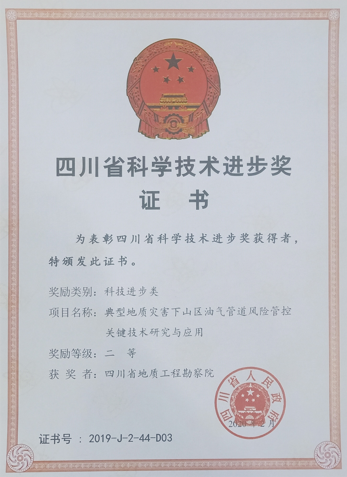 4月21日上午,四川省科學(xué)技術(shù)獎勵大會在成都舉行,大會公布了2019年度四川省科技進(jìn)步獎獲獎名單。其中,四川省地質(zhì)工程勘察院集團有限公司《典型地質(zhì)災(zāi)害下山區(qū)油氣管道風(fēng)險管控關(guān)鍵技術(shù)研究與應(yīng)用》項目獲四川省科學(xué)技術(shù)進(jìn)步獎二等獎。