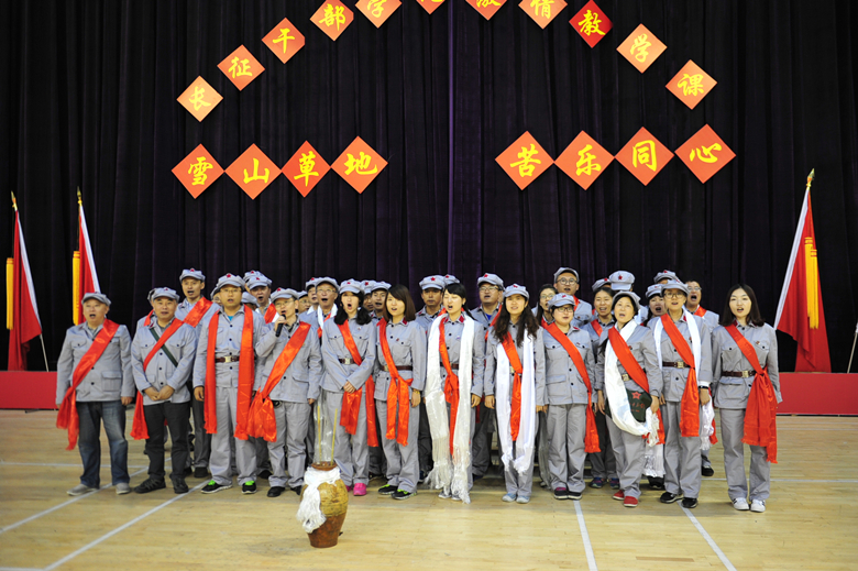 培訓(xùn)期間,隊(duì)伍打紅旗,學(xué)員穿紅軍服、戴紅軍帽、背紅軍包、纏綁腿、系皮帶、戴?;?,出行列隊(duì)整齊有序,成為一支紅色勁旅。學(xué)員們通過(guò)“吃紅軍飯、唱紅軍歌、走紅軍路”的培訓(xùn)形式,經(jīng)過(guò)長(zhǎng)征歷史理論教學(xué)、參觀馬爾康紅軍長(zhǎng)征紀(jì)念館現(xiàn)場(chǎng)教學(xué)、過(guò)草地穿越日干喬大沼澤體驗(yàn)教學(xué),學(xué)習(xí)紅軍隊(duì)伍的堅(jiān)強(qiáng)斗志,體驗(yàn)紅軍長(zhǎng)征中的艱難困苦。